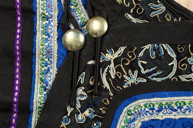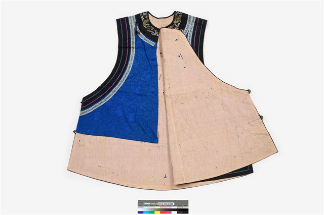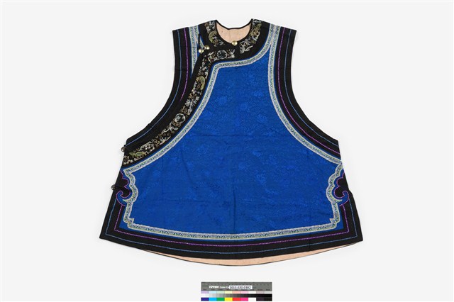 2013.020.0382 藍絲質大襟鑲緄女背心