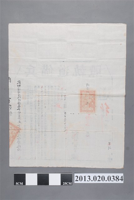 本件文物為時任福建分巡臺澎兵備道兼提督學政梁元桂據軍工廠北鹽埔(今臺南市小北一帶)民人蘇媽為等請求墾築塭埔一事發給之准墾執照。發給日為清同治捌年貳月初三日。