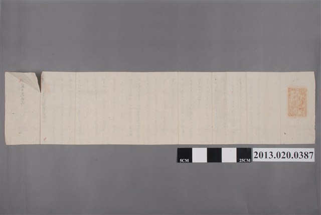本件文物為時任福建分巡臺澎兵備道兼提督學政梁元桂發給青鹽埔地墾戶蘇媽為之准墾諭單(地點位今臺南市小北一帶),有效期限為三年(試墾期間),發給日為清同治八年三月二十六日。
