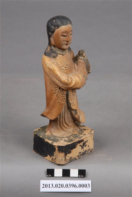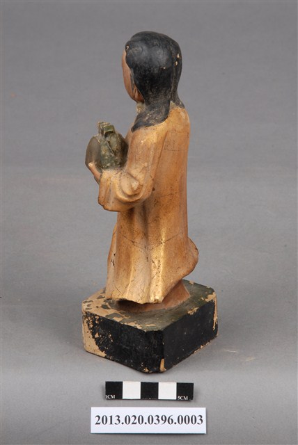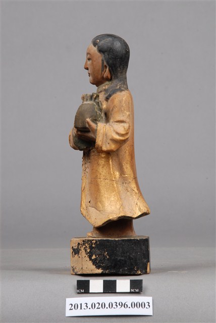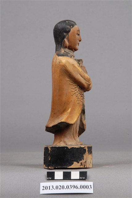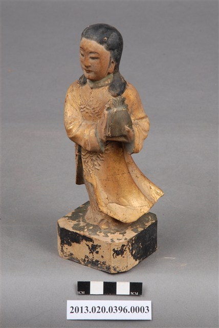 臨水夫人神像旁之隨祀木刻持印婢女神像