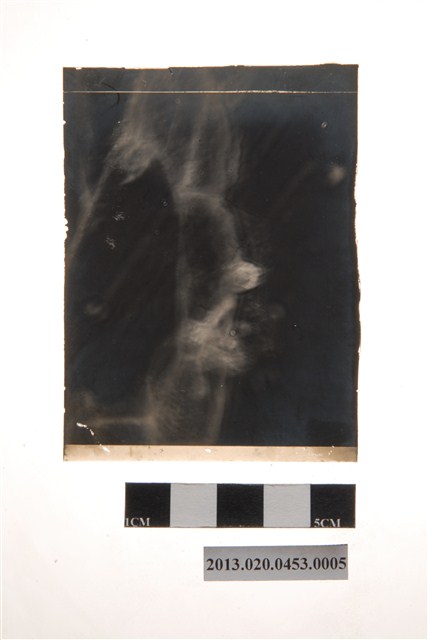 1.本件底片為玻璃材質的負片,玻版四周有硫化銀的銀色反光及邊緣藥膜縮收現象。底片一側有一條直線,推測是底片片匣內的支撐構造,防止底片脫落。2.影像拍攝主題為實驗觀察紀錄22小時後之分生孢子盤中孢子生長分佈情形的顯微影像。3.本件底片原屬國立臺灣大學之農學院所藏,國立臺灣大學前身為1928年日治時期創立的「臺北帝國大學」,成立之初日本人僅將其定位為醫學和農學的實業大學,之後才改變辦學方針而成為綜合大學。1945年中華民國政府接收臺灣後經改制與兩次易名始用現名。