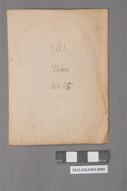 1.本件底片為玻璃材質的負片,玻版四周有硫化銀的銀色反光及邊緣藥膜縮收現象。底片一側有一條直線,推測是底片片匣內的支撐構造,防止底片脫落。2.影像拍攝主題為實驗觀察紀錄96小時後之分生孢子盤中孢子生長分佈情形的顯微影像。3.本件底片原屬國立臺灣大學之農學院所藏,國立臺灣大學前身為1928年日治時期創立的「臺北帝國大學」,成立之初日本人僅將其定位為醫學和農學的實業大學,之後才改變辦學方針而成為綜合大學。1945年中華民國政府接收臺灣後經改制與兩次易名始用現名。