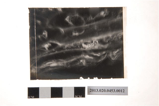 1.本件底片為玻璃材質的負片,玻版四周邊緣藥膜縮收現象。底片一側有一條直線,推測是底片片匣內的支撐構造,防止底片脫落。2.影像拍攝主題為實驗觀察紀錄168小時後之分生孢子盤中孢子生長分佈情形的顯微影像。3.本件底片原屬國立臺灣大學之農學院所藏,國立臺灣大學前身為1928年日治時期創立的「臺北帝國大學」,成立之初日本人僅將其定位為醫學和農學的實業大學,之後才改變辦學方針而成為綜合大學。1945年中華民國政府接收臺灣後經改制與兩次易名始用現名。