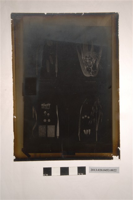 1.本件底片為為玻璃材質的負片,四周有氧化污漬現象。2.影像紀錄四幅玉米感染黑粉病時的症狀表現圖。四張合併的書頁,為求平整,貼在櫥窗玻璃上翻拍。3.玉米黑粉病,或稱玉米黑穗病,是由玉米黑粉菌所導致的玉米病害,又名瘤黑粉病,是玉米常見的病害之一。玉米莖、葉、雄穗、雌穗以及腋芽等幼嫩組織均可發病, 玉米發病部位組織受病原菌刺激形成瘤體,影響玉米產量,其菌癭可食用,在墨西哥被稱作是「墨西哥松露」,是用來招待貴客的美食。4.本件底片原屬國立臺灣大學之農學院所藏,國立臺灣大學前身為1928年日治時期創立的「臺北帝國大學」,成立之初日本人僅將其定位為醫學和農學的實業大學,之後才改變辦學方針而成為綜合大學。1945年中華民國政府接收臺灣後經改制與兩次易名始用現名。
