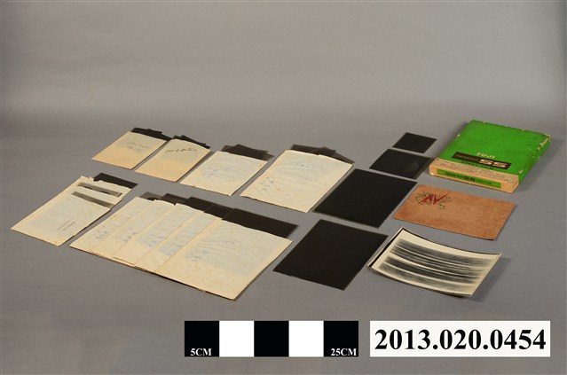 1.本件賴炳琳底片與照片組,共1組22件,包括外盒及20張底片、1張照片與及防潮保護用薄紙袋。外盒為硬紙板製作之長方形紙盒,分為盒蓋及盒身,上下開闔。20片底片為膠片材質,影像內容包括人物照、植物病害及研究實驗紀錄等。2.賴炳琳,1972年國立臺灣大學植物病蟲害研究所碩士畢業生,指導教授陳其昌、吳龍溪,其碩士論文題目為「白絹病菌菌核形成之研究」。3.本組文物原藏於國立臺灣大學之農學院,國立臺灣大學前身為1928年日治時期創立的「臺北帝國大學」,成立之初日本人僅將其定位為醫學和農學的實業大學,之後才改變辦學方針而成為綜合大學。1945年中華民國政府接收臺灣後經改制與兩次易名始用現名。3.與2013.020.0376、2013.020.0451~2013.020.0453為同一批臺北帝國大學時期至臺灣大學之農學院所存照片。