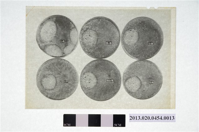 1.本件底片屬膠片材質,為1973年3月20日賴炳琳編號S-1等六培養皿的實驗記錄影像,底片中有六個培養皿,上排三個由左到右分別標註「S-1」、「S-6」及「X-1」,下排三個則標註「P-1」、「P-10」及「T-1」,底片左下角有「FUJI」凹刻字樣。保存該底片的紙袋正面寫有「圖15、16」「賴炳琳」及「62. 3. 20」等藍色字跡。2.底片尺寸非制式規格,可能是由大張底片裁切而來。「NEOPAN SS SHEET FILM」片裝軟片11.8cm x 16.3cm裁切成2張。每一張約為8.1cm x 11.8cm。底片有印記「FUJI SAFETY」字樣,代表這是安全軟片,不會燃燒的醋酸纖維片。3.本件底片原藏於國立臺灣大學之農學院,為國立臺灣大學農學院賴炳琳底片與照片組組件之一。國立臺灣大學前身為1928年日治時期創立的「臺北帝國大學」,成立之初日本人僅將其定位為醫學和農學的實業大學,之後才改變辦學方針而成為綜合大學。1945年中華民國政府接收臺灣後經改制與兩次易名始用現名。