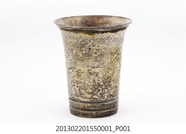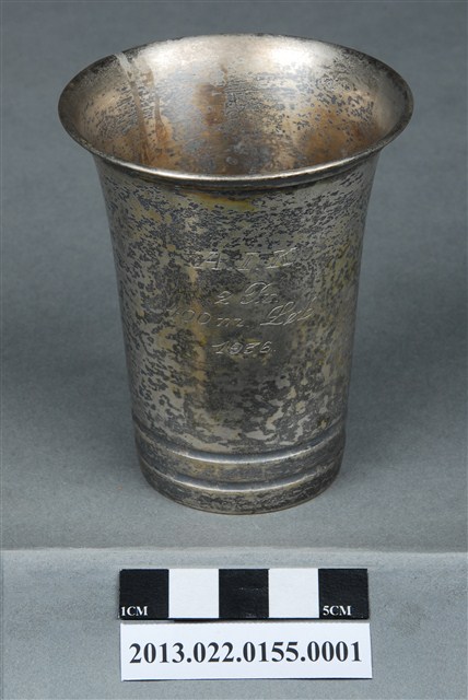 1.本物件為1936年柏林奧運紀念杯,金屬材質。杯子外觀有「A.I.K.」、「2 RL.」、「400m.」、「Lob.」、「1936.」字樣。物件有大面積鏽蝕狀況。第11屆夏季奧林匹克運動會,於1936年8月1日至8月16日在德國柏林舉行。