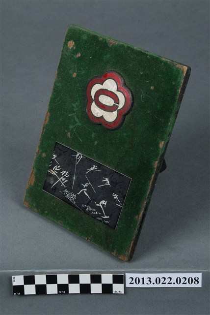 1. 本件中京大學田徑紀念牌原為張星賢先生之收藏品,由其四子張昭平先生捐贈給臺灣歷史博物館。外觀呈長方形,底板為木質,正面表面貼一層綠色絨布皮,邊緣略微破損,露出淺原木色,上半部中央鑲有一枚中京大學校徽,下半部鑲一塊長方形黑底白紋金屬牌,牌上繪有跑步、跨欄、撐竿跳、標槍、跳遠等田徑運動項目之人形圖案,右下角寫有奧林匹克格言之拉丁文「Citius, Altius, Fortius」字樣,意為「更快、更高、更強」,以及年代「1964」和「I. TOKI」字樣。賞章背面髹黑漆,中央釘有長條型木支架,可撐開立於桌上展示。2. 張星賢(1910-1989)為臺灣田徑選手,出生於初生於日治時期的臺中廳,1932年代表日本參與洛杉磯奧運,為臺灣首位奧運選手,1948年回臺灣創立田徑協會,擔任首屆臺灣省田徑協會會長,並擔任總幹事達二十餘年,以教練身份培訓、指導新一代臺灣田徑選手,例如陳英郎、楊傳廣、紀政等人。