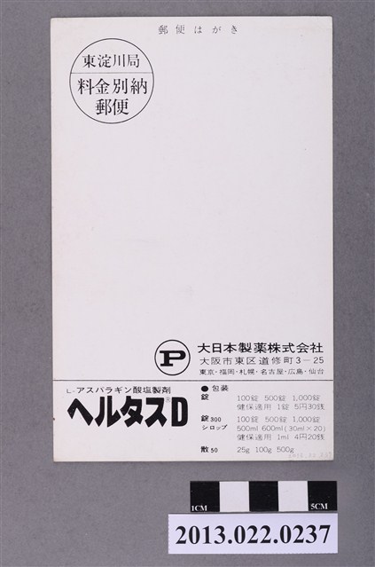 1.本物件為1948年日本選手於倫敦奧運登場成績紀念廣告明信片,材質為紙質。明信上有1幅圖畫,畫面中央有1名男子手持鐵餅,做預備擲鐵餅姿態。男子下方有奧運五環圖樣,後方有英國地標西敏寺鐘塔圖樣。圖畫上的字樣為「OLYMPIC GAMES」、29、「JULY」、1948、14、「AUGUST」、「LONDON」。透過明信片下方的日文介紹詞,可得知日本、德國重回國際社會。明信片背面為大日本製藥株式會社相關廣告資訊,包含地址、產品介紹與價格。