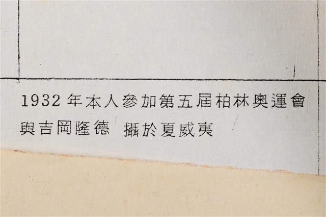 1.本物件為夏威夷歡迎會場張星賢與吉岡隆德合照,1932年張星賢前往夏威夷比賽,後方有「日本選手歡迎會場」布條,以及日本國旗高掛,與吉岡隆德合照。吉岡隆德為日本田徑選手1932年曾參加奧運100公尺。