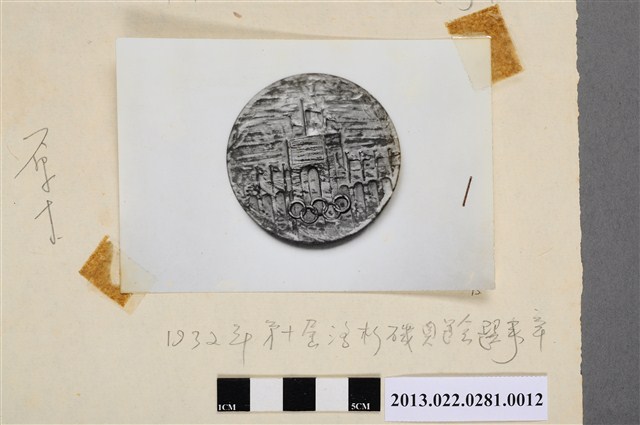 1.本物件為1932年第十屆洛杉磯奧運會選手章。徽章上刻有各國國旗在奧運會場飄揚之意象,以及奧運會會徽。