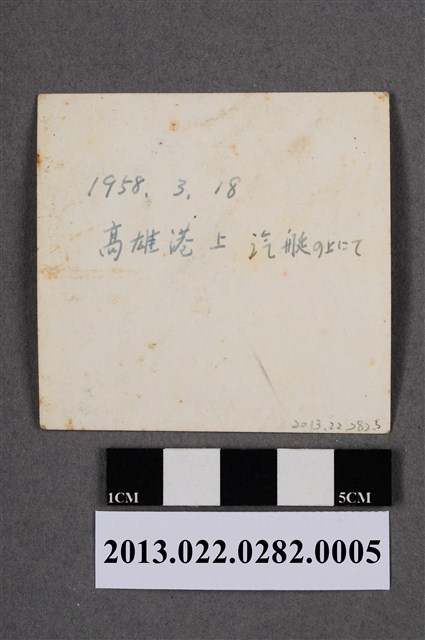 1.本物件為張星賢等4人於高雄港汽艇上合照,張星賢(右二)與友人在高雄港裡的汽艇上合照。
