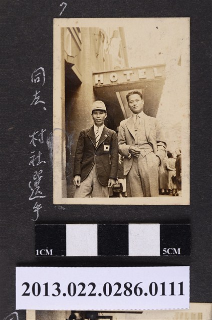 2013.022.0286.0111 村社選手等2人於赫爾辛基旅館前合照
