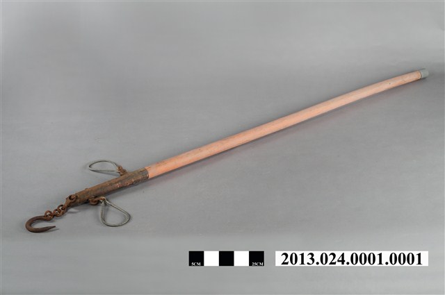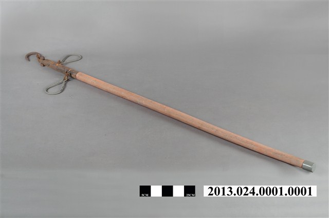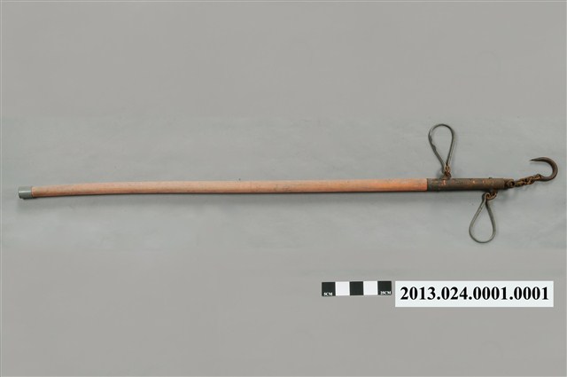 1.桿秤一組,包含秤桿與秤砣,跟據捐贈者描述,此物件為當時家中豬隻買賣時秤重所用,秤跎上標有"昌"與"150K"字樣。 2.桿秤的大小與欲量測的重點有關係,早期若要量秤豬公豬隻,得使用六臺尺或七臺尺的大桿秤才有辦法量秤。
