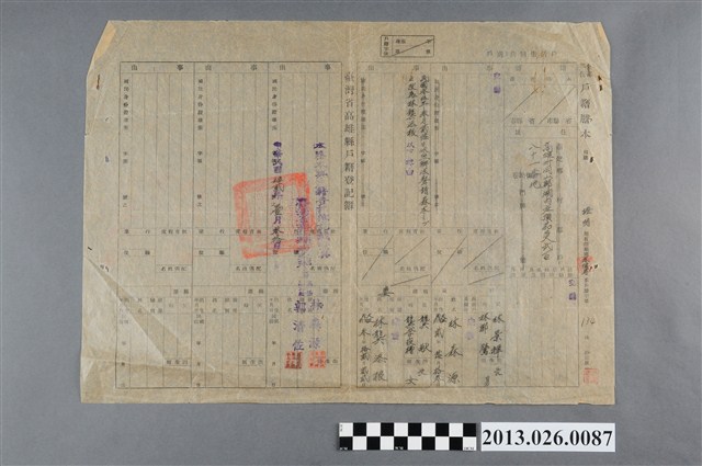 2013.026.0087 1953年1月30日台灣省高雄縣林龔添根一家戶籍登記簿