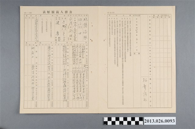2013.026.0093 1956年5月1日林龔添根公務人員履歷表