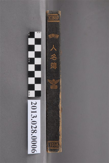 2、本件名片簿封面為黑色,有「KING、名刺人名簿、NAME CARDS」字樣。內頁現狀為紅褐色,每頁均可插置六張名片,共25頁、可存置150張名片,目前約有85張名片。名片插槽尺寸統一長約9公分、寬約4公分,寬度較今日常件之名片少約1.5公分。