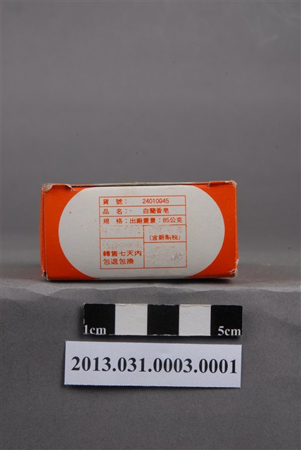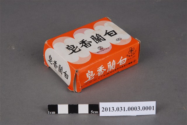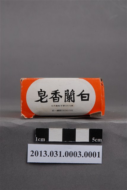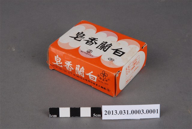 此為吳進添於1980年代初期購藏之白蘭香皂,內含肥皂。國聯工作股份有限公司於1969年成立,現已消滅,白蘭品牌僅剩洗衣洗碗精,由英國商聯合利華股份有限公司經營,其廣告手法名噪一時。
