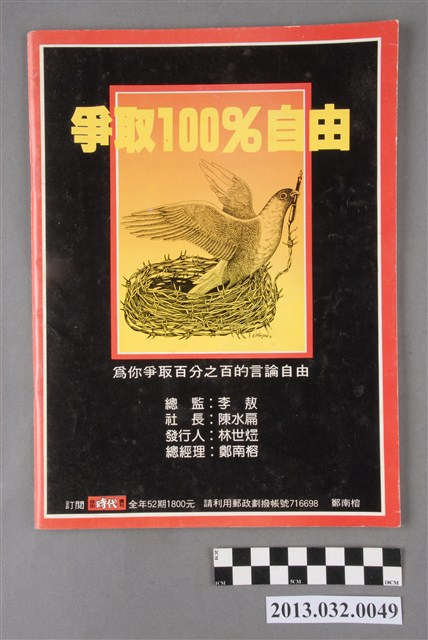 《自由時代》系列雜誌為鄭南榕所創辦,創刊於1984年3月,以「爭取百分之百的言論自由」為主旨,對當時執政黨的嚴密的言論及思想控制多所批判,因而屢遭查扣或停刊。本刊(自由時代週刊)時由李敖擔任總監,林世煜為發行人,陳水扁任社長,顏錦福任副社長。