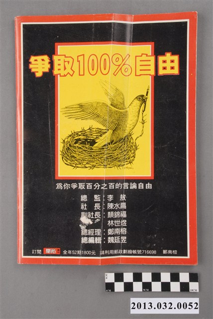 《自由時代》系列雜誌為鄭南榕所創辦,創刊於1984年3月,以「爭取百分之百的言論自由」為主旨,對當時執政黨的嚴密的言論及思想控制多所批判,因而屢遭查扣或停刊。本刊(開拓週刊)時由李敖擔任總監,葉菊蘭任發行人,陳水扁任社長。