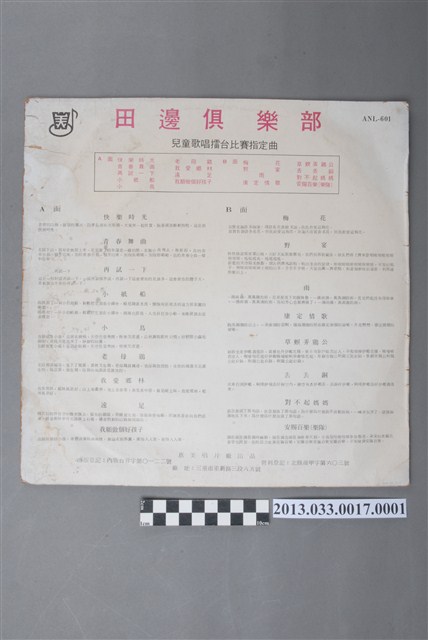 2013.033.0017 惠美唱片廠出品編號「FDC-601」歌唱專輯《田邊俱樂部 寒假兒童歌唱擂台(二重唱)指定曲》