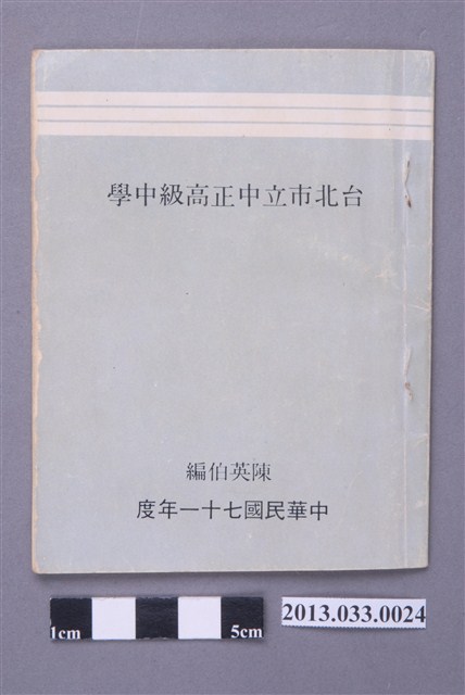 2013.033.0024 陳英伯編、臺北市立中正高中印製,《愛國歌曲選集 第三集》(七十一年度)