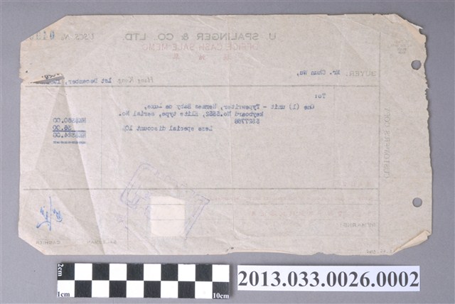 附有外提箱及購買保證書,註明1956年12月自瑞士進口,為捐贈者父親於香港購得,作為三洋公司外貿活動之應用。