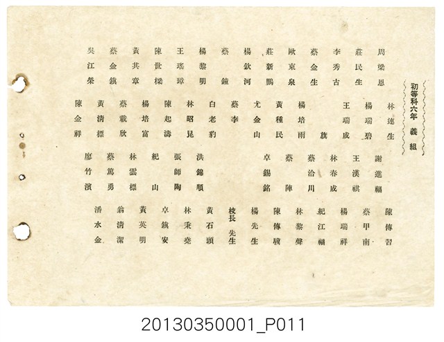 2013.035.0001 梧棲國民學校初等科高等科第1屆畢業紀念冊