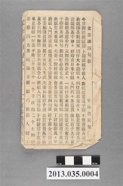 2013.035.0004 竹林書局發行《食茶講四句歌》