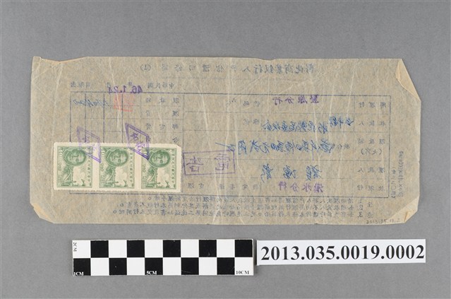 民國46年1月24日為當中所夾之彰化商業銀行入戶信匯回條日期