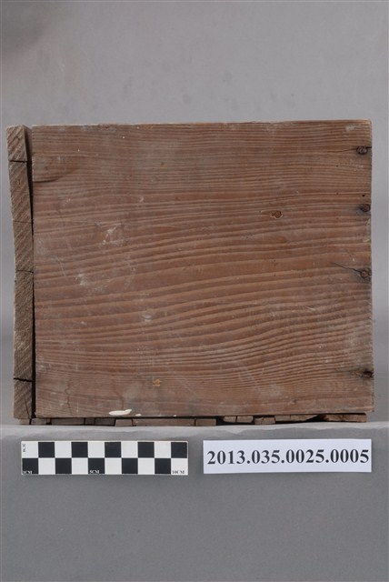 俗稱〝帽仔箱〞套上帽仔模後,編織帽簷時必須放入木箱在板上繞著圓圈編織,因弧度增大隨時填草,增加密度,精緻美觀。