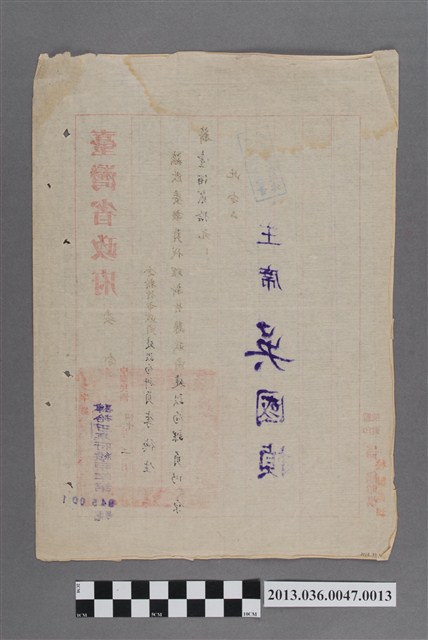 銓敘部任用審查通知書(臺灣省新竹縣政府新竹區署)