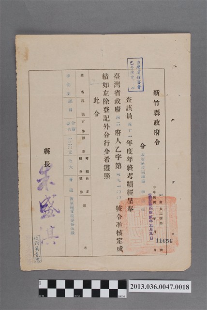 2013.036.0047.0018 新竹縣政府41年度年終考績通知書