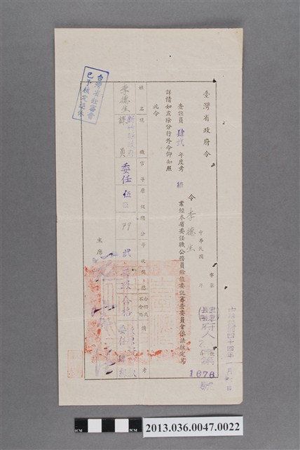 2013.036.0047.0022 新竹縣政府42年度考績通知書