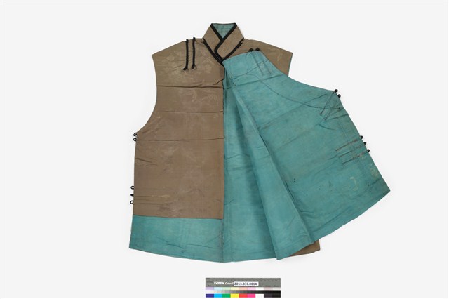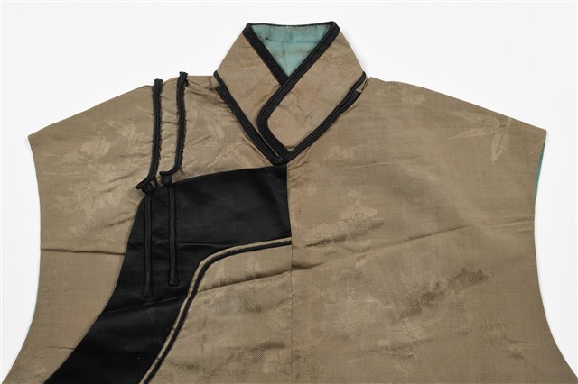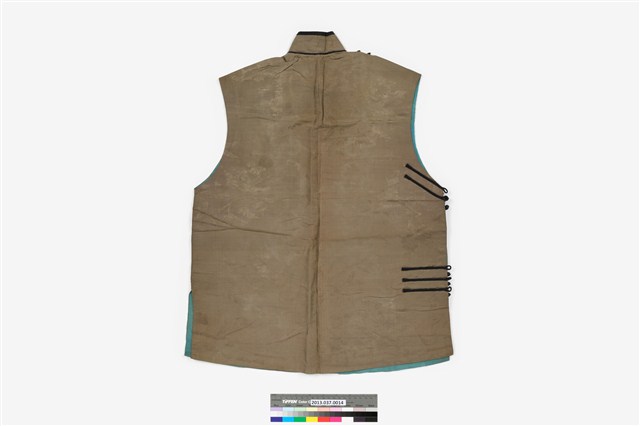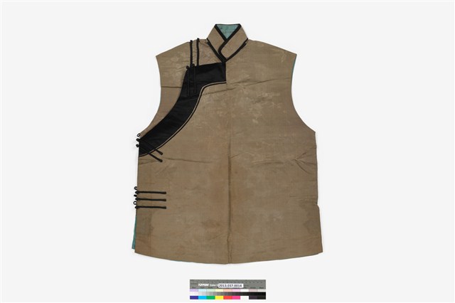 2013.037.0014 灰綠絲質緹花大襟女背心