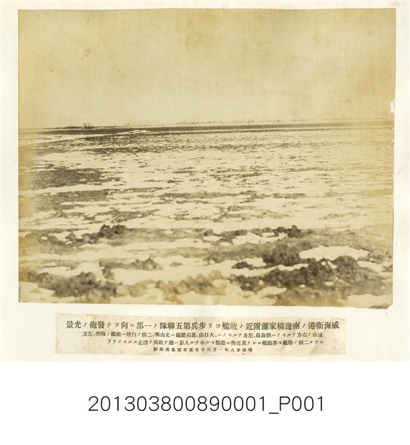 2013.038.0089.0001 威海衛港南邊楊家攤附近,敵艦向步兵第五聯隊砲擊