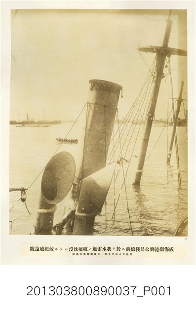 2013.038.0089.0037 我水雷艇於威海衛劉公島棧橋擊沉的敵艦威遠號