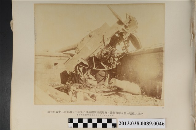 2013.038.0089.0046 我軍破壞威海衛港東岸龍庿嘴砲臺內的克式十五珊知米三十五口徑砲