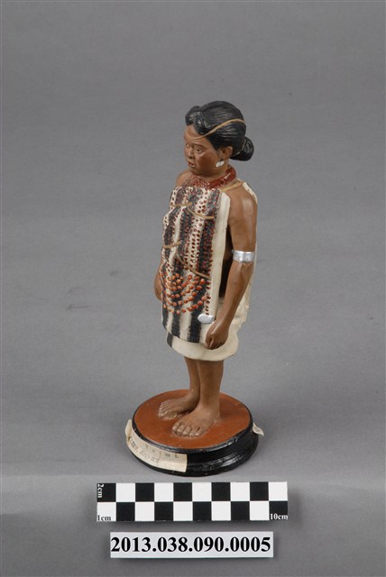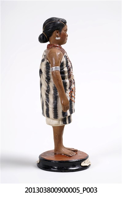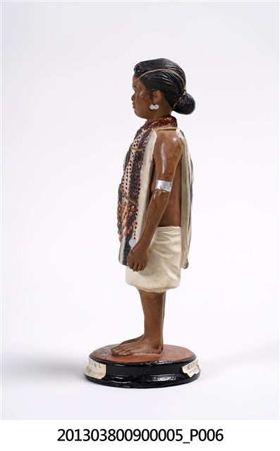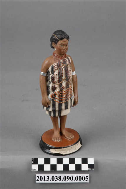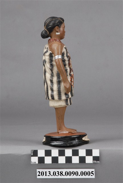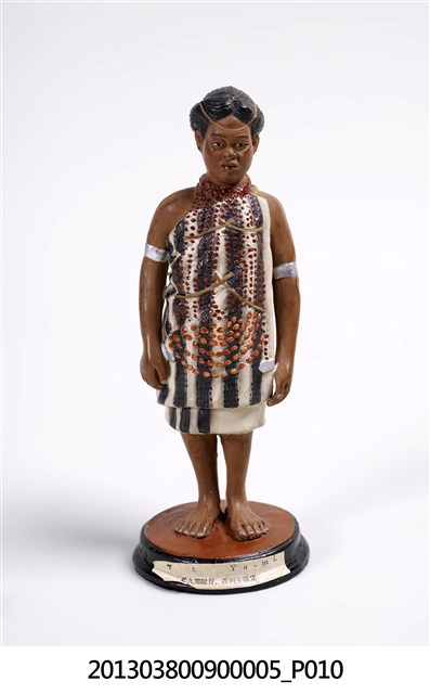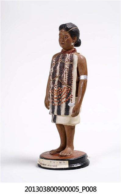 雅美族(達悟)Ya-mi人偶。博多人形於1890年(明治23年)第3回内国勧業博覧会與1900年(明治33年)巴黎萬國博覧会被展出,並造成話題。井上武歷史標本製作所,應是「 井上式地歴標本製作所」, 井上清助為活躍於日本明治、大正年間的博多人形工匠,早期經商並不順利,決定上京(東京),探訪當時同樣是福岡出身的政治家金子堅太郎(かねこけんたろう),並認識當時東京帝國大學之人類学者坪井正五郎(つぼいしょうごろう),由坪井正五郎提案將世界人種、考古遺物等以博多人形的方式呈現,從此由坪井正五郎指導製作出如「世界人類風俗人形」「日本歴代服飾模型」並被學校採用為教材,也使得博多人形廣為人知,而井上清助所屬的中ノ子家,目前已到第十四代。