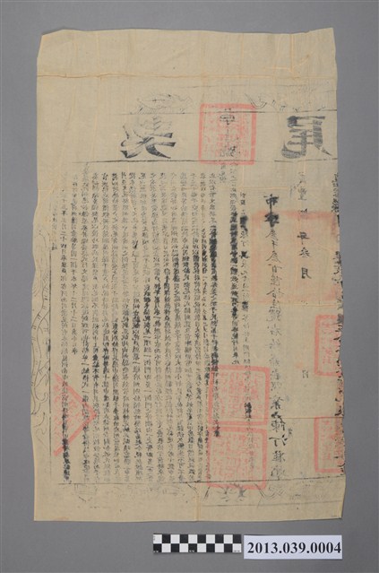 為福建等處承宣布政使司發給嘉義縣業戶陳汀契尾,土地位於麻豆保苓仔林社。