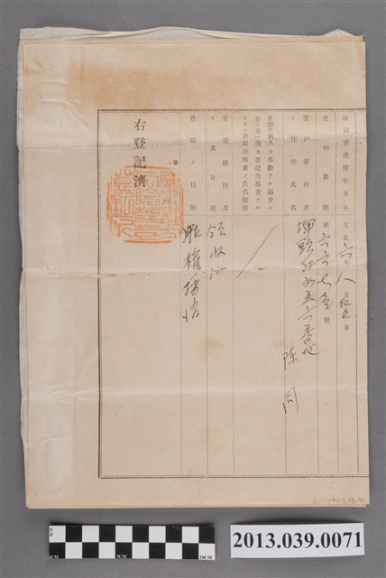 為陳同向林陳氏柿以土地胎借現金之契字。