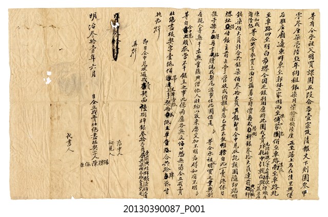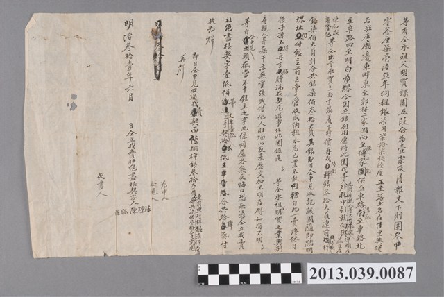 2013.039.0087 佳里興堡後班庄土地賣予陳和成及謝龍記之契約