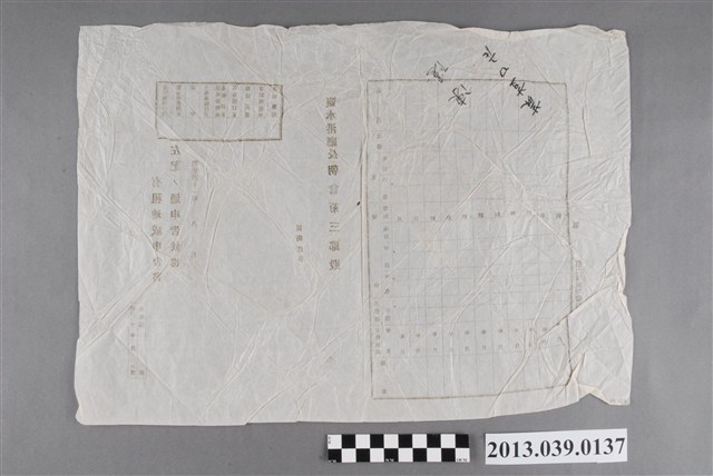 日文原文為"鹽水港廳有租地成申告書左記ノ通申告候也",為明治41年印製。