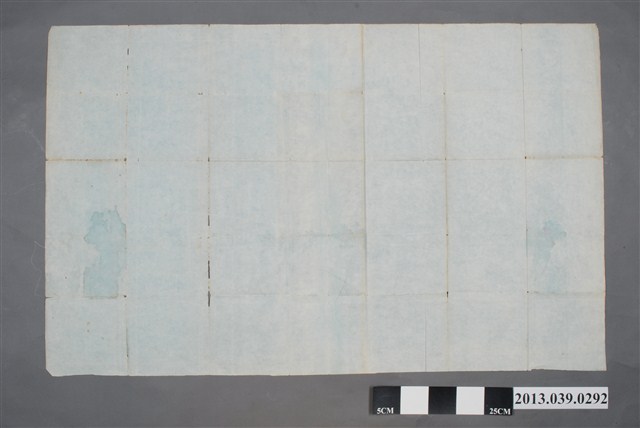 1.此件為〈新營郡尾寮區小水路平面圖〉,圖面番號為小土北第330號,於昭和三年(1928年)九月十四日製圖,設計者為技手補森甚五郎,無監查者。左下圖名右側有「十月三日照合者蘇戊寅」之直書字樣。2.比例尺為二千五百分之一,地圖上方指向西北方(非正西北)。圖面繪有支分線、庄界、給水線、排水線、分水門、分水門及量水堰、灌溉區域界、非灌地、輪作番號及灌溉甲數等資訊,並以地籍圖為底圖,記有每塊土地之地目、地番。3.此圖的繪製範圍為尾寮區,可對應嘉南大圳當時施行之三年輪作制度,圖中分為3個小區,分別以圓形圖案標示其輪作番號與灌溉甲數。此圖之輪作番號大致與〈嘉南大圳灌溉地給水區分圖─新營〉中之尾寮區域符合。4.灌溉甲數:輪作番號一─灌26.9、非7.3,輪作番號二─灌34.9,輪作番號三─灌44.6。5.尾寮區灌溉範圍狹長,東側有部分繪製於圖面下方,並標示A─B線段連結。第二小區有部分土地以紅線圈起或塗色。(莊竣雅撰寫)