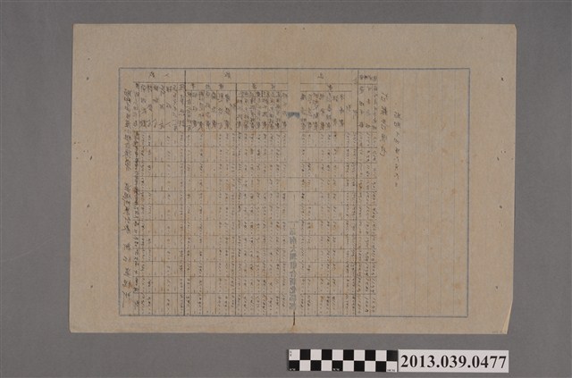 1. 本件「小組合豫算監視所集計表」,為館藏2013.039.0525新化灌溉監視所應新化郡部指示,將該年度各個實行小組合預算與決算報告,回覆新化郡部長的公文附件之一。館藏2013.039.0468~0477等預算書經考證應為此公文之附件,本件為其他〈實行小組合歲入歲出預算書〉的總統計表。2. 新化監視所下轄實行小組合:南潭頂、東番子寮、番子寮、西番子寮、南番子寮、北新化、唪口、北勢、新化、洋子、崙子頂,除了館藏尚無洋子區實行小組和的報告之外,以上可對應館藏2013.039.0468~2013.039.0476。本件為上述實行小組合預算書的合計表。3. 但依據《嘉南大圳灌溉地給水區分圖:新化》顯示,新化灌溉區不只上述幾個區域,因此新化灌溉區是否有其他的灌溉監視所,尚須查證。4. 本件如同〈實行小組合歲入歲出預算書〉的欄位的部分:(1)歲入ノ部:小組合費、繰越金(繰越し,即結轉,carry forward;繰越金,即結轉金額 ,amount carried forward)、補助金、寄附金(捐贈金額)、雜收入、過年度未收入金(2)歲出ノ部:事務費的項目,有聯合會負擔金、徵收費、徵收獎勵費、消耗品費、備品費、慰勞金、會議費。事業費分三個項目:I. 水稻區費有給水路費、應急補修費、灌溉管理費、共同苗代費II. 甘蔗區費則有給水路費、應急補修費、灌溉管理費III. 其他則有排水路費、構造物費、農道費、補助獎勵費、視察費、共同處辨費、雜費、準備金。5. 比〈實行小組合歲入歲出預算書〉多出的部分,為「負擔關係」欄:負擔甲數、甲當負擔、前年度甲當負擔。(曾明德撰寫)