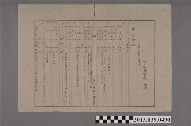1. 本件實行小組合歲出歲入預算書,與館藏2013.039.0480~0483、0486~0493、0495同為善化灌溉區底下之實行小組合。根據館藏2013.039.0468~0477推測,這批善化灌溉區的預算書應是善化灌溉監視所負責人,向新化郡部長提出公文的附件,但目前尋無此公文。2. 社子頂區屬於新化郡部善化灌溉給水區域內,推測屬於新市灌溉監視所管轄。3. 本件報告時間為昭和14年(1939)6月8日,推測為該年度嘉南大圳組合的通常組合會(即預算總會)前提出的報告。4. 嘉南大圳實行小組合歲入歲出預算書的格式如下:(1)歲入ノ部:小組合費、繰越金(繰越し,即結轉,carry forward;繰越金,即結轉金額 ,amount carried forward)、補助金、寄附金(捐贈金額)、雜收入、過年度未收入金(2)歲出ノ部:事務費的項目,有聯合會負擔金、徵收費、徵收獎勵費、消耗品費、備品費、慰勞金、會議費。事業費分三個項目:I. 水稻區費有給水路費、應急補修費、灌溉管理費、共同苗代費II. 甘蔗區費則有給水路費、應急補修費、灌溉管理費III. 其他則有排水路費、構造物費、農道費、補助獎勵費、視察費、共同處辨費、雜費、準備金。※本報告為小數點後無條件捨去法。5. 本件細部說明:(1)小組合費:8.6圓/甲*123甲=約1,057圓(2)繰越金:前年度繰越(3)雜收入:予金利子(即「預金利子」,即存金利息)其ノ他(4)聯合會負擔金:經常負擔甲當65錢81圓、臨時負擔農道工事費之16℅為72圓(5)慰勞金:組合長12圓*1人;小區長6圓*3人;相談役(即顧問)3圓3*人(6)水稻區之給水路費:36錢/坪*320坪,約115圓(7)水稻區灌溉管理費:通水專任管理人1人80錢/日*120日=96圓(8)水稻區共同苗代費:共同苗代(秧苗)用地1甲18的贌耕料(贌在文本原字為「貝卜」,依據歷史脈絡推測為贌耕費)及管理人平當(9)甘蔗區灌溉管理費:通水專任管理人1日1人80錢,30日分(10)排水路費:32錢/坪*222坪=約29圓,但表格寫為73圓,有誤(11)農道費:第三區農道施設工事費(曾明德撰寫)