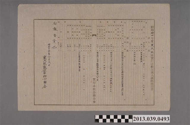 2013.039.0493 嘉南大圳組合〈昭和十四年度東大社區實行小組合歲入歲出豫算書〉