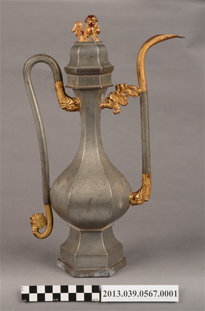 銅製酒壺,依型制推測應用於祀王祭典,製造年份不詳,日治、戰後均有可能