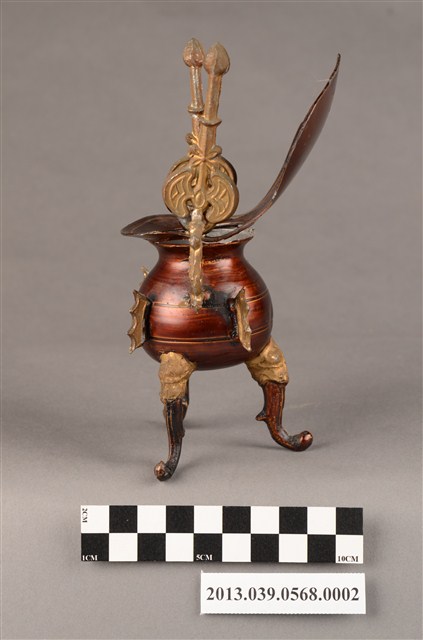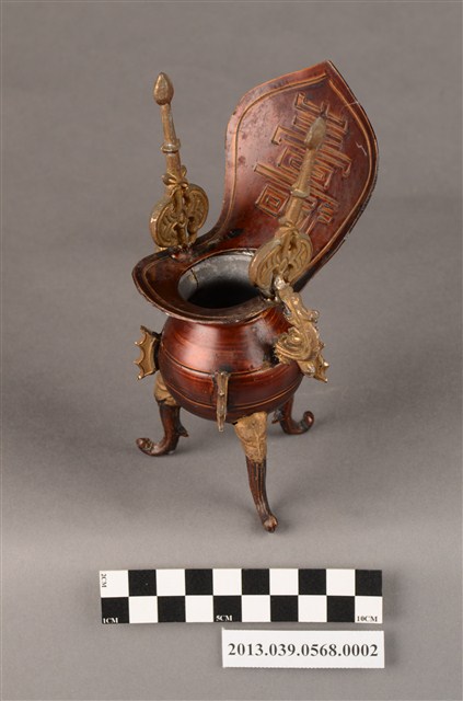 銅製爵杯,上有壽字樣,可能是做為祀神祝壽之用。製造年份不詳,日治、戰後均有可能