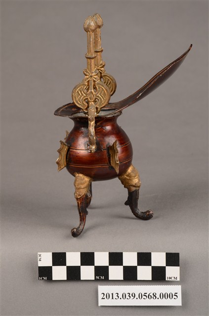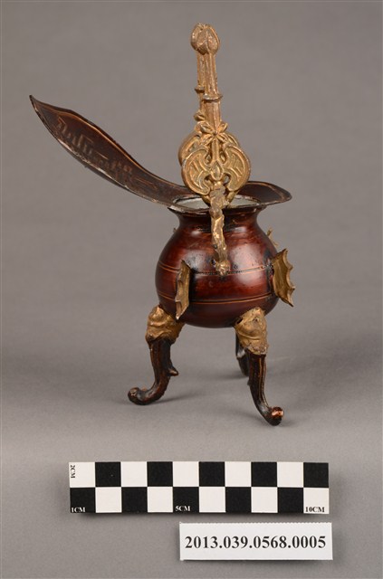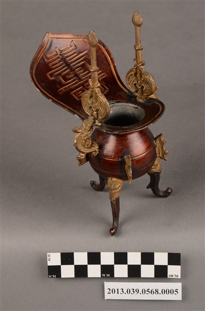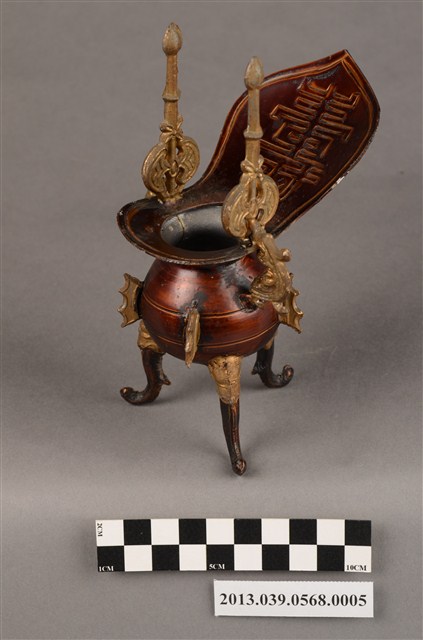 銅製爵杯,上有壽字樣,可能是做為祀神祝壽之用。製造年份不詳,日治、戰後均有可能